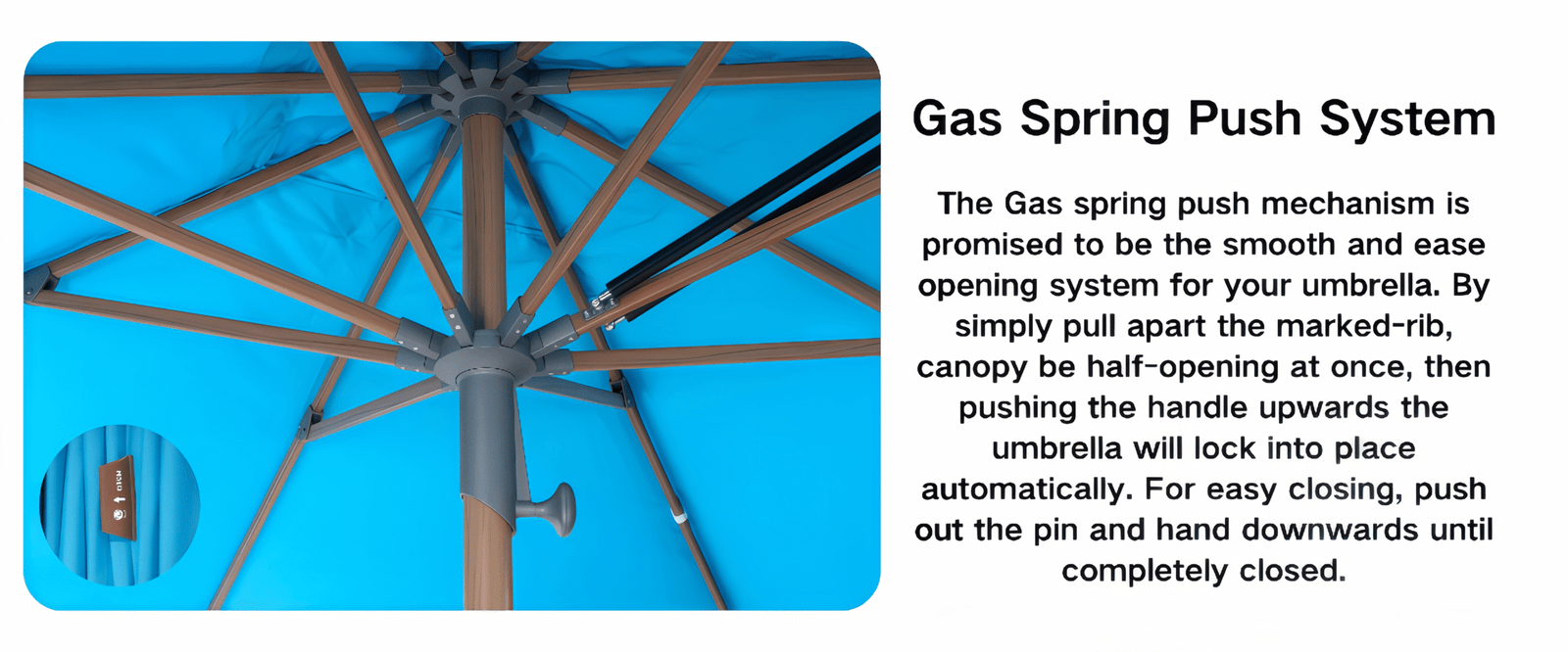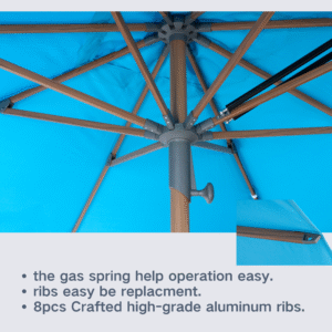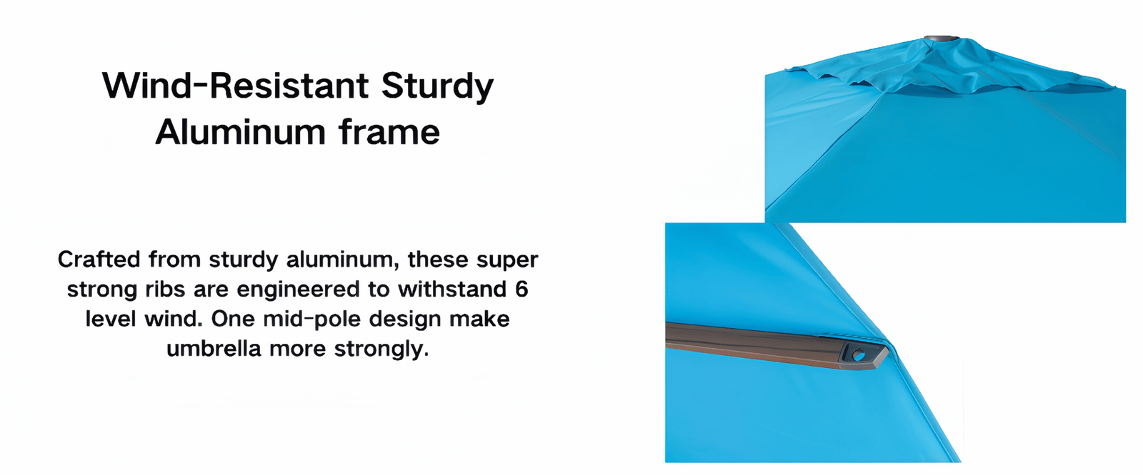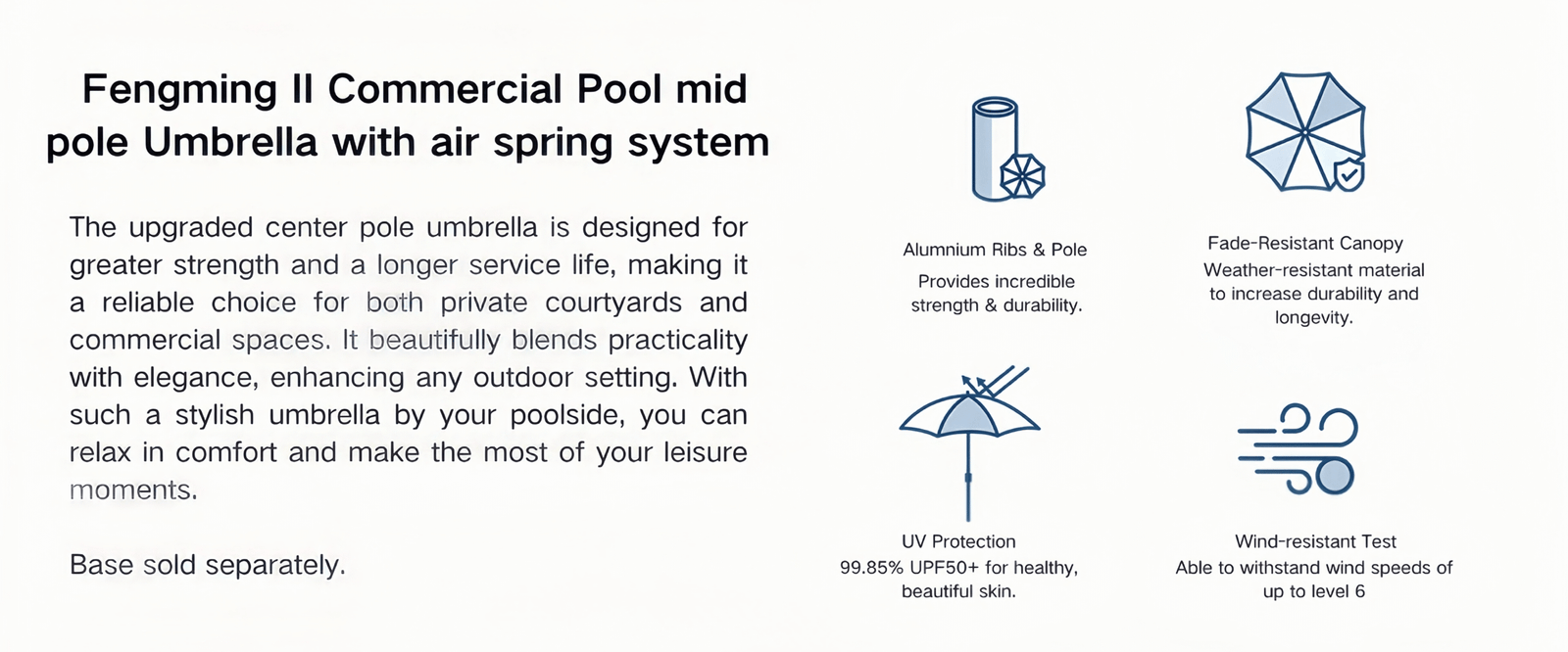 The upgraded center pole umbrella is designed for greater strength and a longer service life, making it a reliable choice for both private courtyards and commercial spaces. It beautifully blends practicality with elegance, enhancing any outdoor setting. With such a stylish umbrella by your poolside, you can relax in comfort and make the most of your leisure moments.