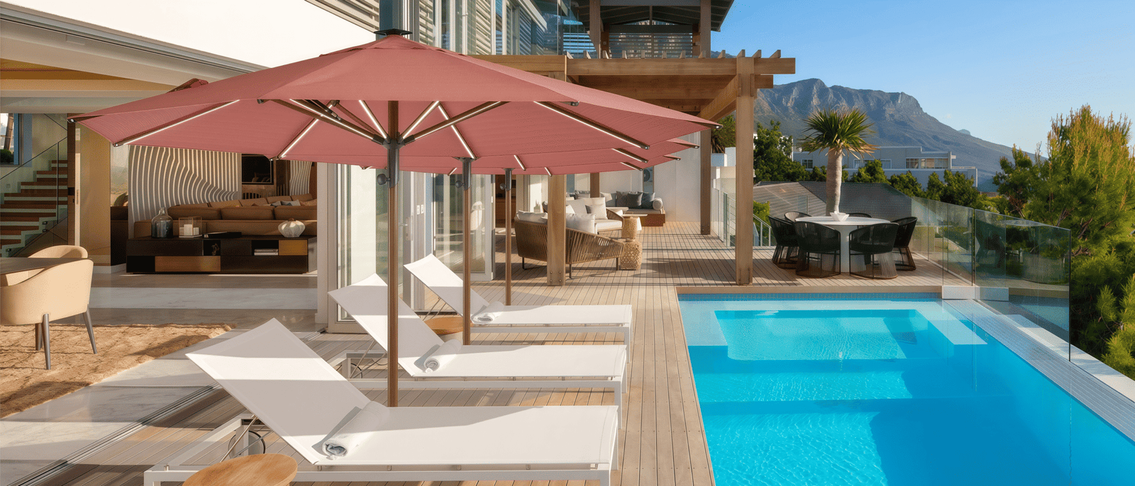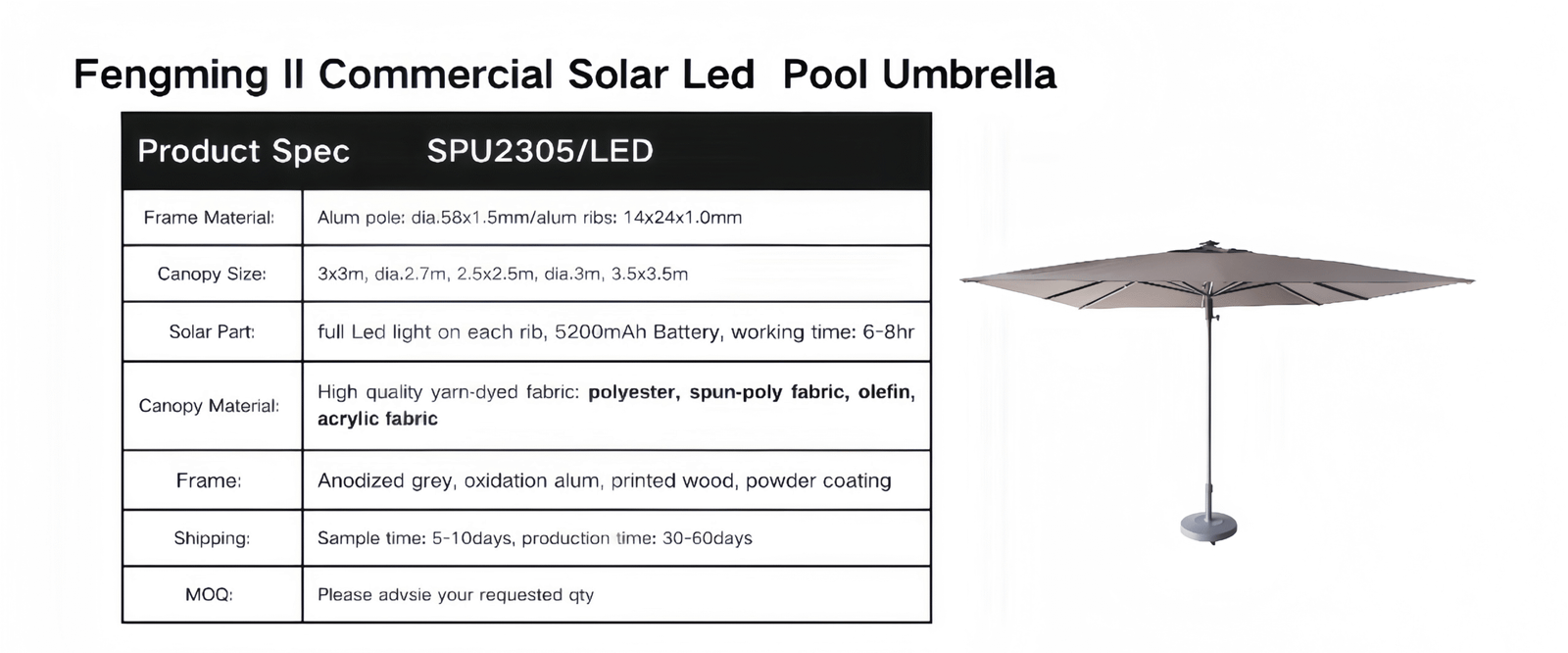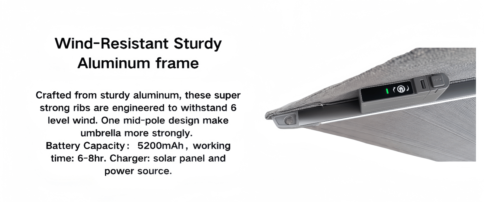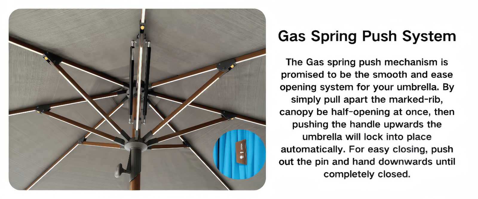The upgraded center pole umbrella is designed for greater strength and a longer service life, making it a reliable choice for both private courtyards and commercial spaces. With such a stylish umbrella by your poolside, you can relax in comfort and make the most of your leisure moments. The built-in solar LED lighting casts a soft, gentle glow, creating a warm and cozy atmosphere that adds a touch of joy and comfort to every gathering.