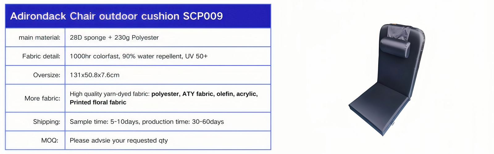 Our cushions come in a wide range of styles, thoughtfully designed with soft, comfortable filling that offers a cozy and inviting feel for sitting or lounging. Crafted from durable waterproof fabric, they stand up beautifully to everyday use and changing weather, giving you peace of mind season after season. We’ve also improved the packaging to be more compact and efficient—reducing shipping hassles and helping you save on delivery costs without compromising protection. With a variety of colors and materials to choose from, there’s a perfect match for every taste and outdoor setting. The sizes are carefully designed to fit most standard outdoor furniture seamlessly. And when it comes to care, keeping them fresh is simple—just a little maintenance keeps them looking like new. Enjoy lasting comfort and style with less effort, so you can focus on what matters most: relaxing and enjoying your outdoor space.