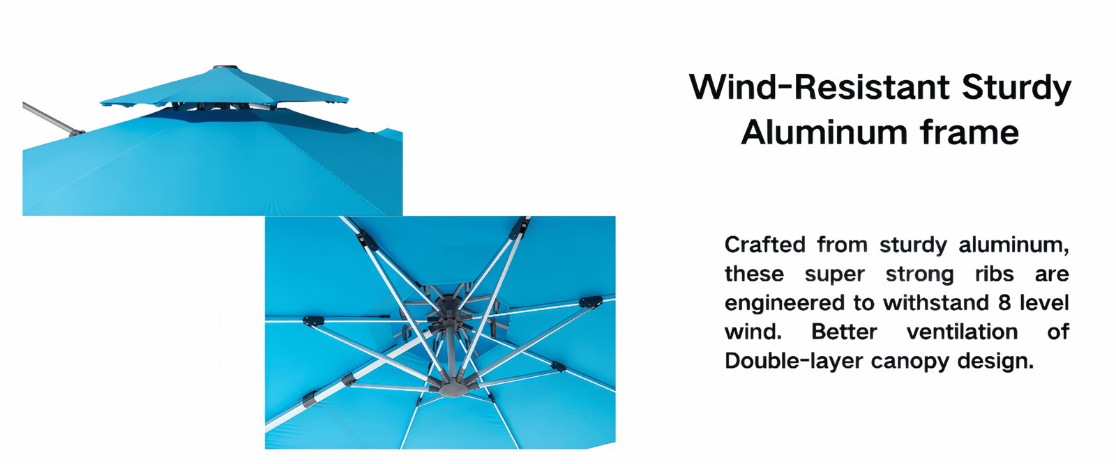 With its sleek and minimalist design, this Garden hanging umbrella aligns perfectly with the modern tastes and style preferences of today’s youth. Thoughtfully crafted to combine all the practical benefits of a hanging patio umbrella–such as easy steering, adjustable features, and space-saving convenience-it stands out as an ideal choice for contemporary families.