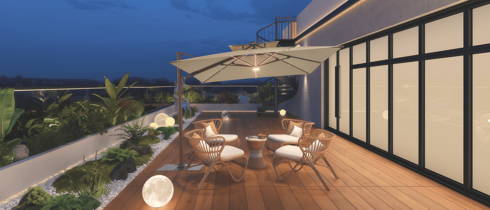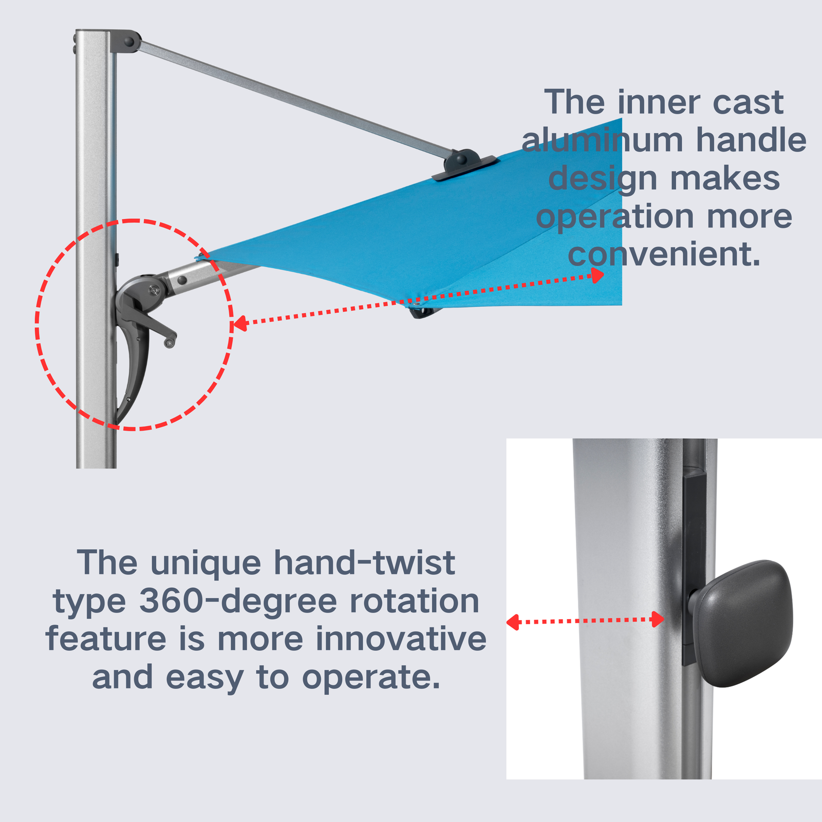With its sleek and minimalist design, this Garden hanging umbrella aligns perfectly with the modern tastes and style preferences of today’s youth. Thoughtfully crafted to combine all the practical benefits of a hanging patio umbrella–such as easy steering, adjustable features, and space-saving convenience-it stands out as an ideal choice for contemporary families.